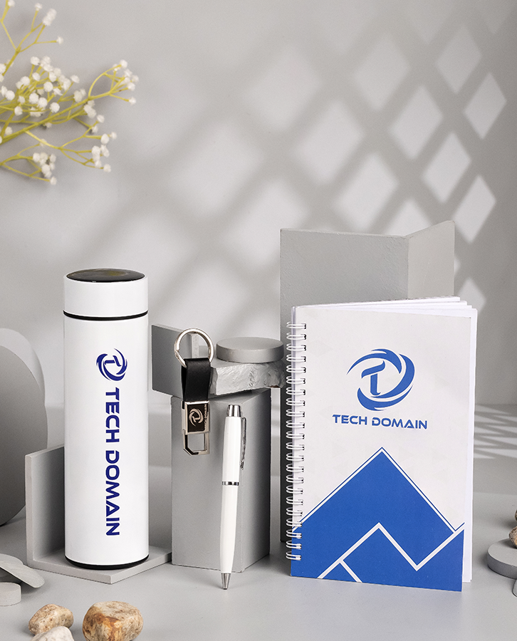 Introducing our Tech Domain Giveaway, a thoughtfully curated collection designed to enhance your workday. Inside, you’ll find a temperature bottle, a stylish metallic keychain, a premium pen, and a stylish diary, all neatly packed in a premium box.